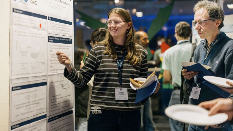 Sharing ideas across disciplines: a PhD student from the Department of Chemistry presents her research at the Quantum Campus Aarhus Annual Meeting in December 2025. Photo: Liv Lindhardt Rohde Larsen, AU Photo